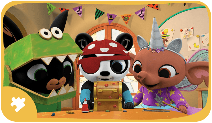 Bing is a children's tv programme following the adventures of Bing, a young rabbit, and his friends and family. He learns about the world around him by exploring, and making the most of everyday situations.
